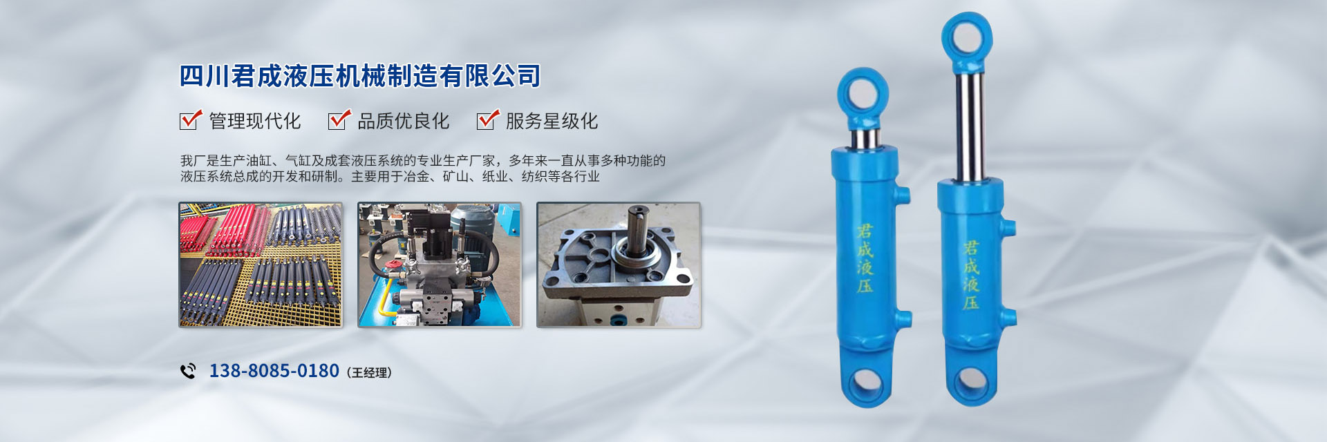 公司主導(dǎo)產(chǎn)品:液壓油缸HSG1全系列,YHG1型冶金設(shè)備缸,以及GHF1系列高壓液壓缸、多級缸等??蹓菏饺盗幸簤耗z管以及特殊要求的液壓膠管總成。公司銷售項目還包括各種管接頭、多路閥、液壓鎖、液壓系統(tǒng)、頂磚機、全液壓式垃圾庫等,承接各類大、中型成套液壓系統(tǒng)的設(shè)計制造、安裝和調(diào)試服務(wù)。
